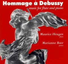 | Hommage à Debussy Maurice Heugen - Flute Marianne Boer - Piano Werken van: Claude Debussy, André Caplet, Paul Dukas, Abert Roussel, Willem Pijper, Joseph Jongen Luisterfragmenten: Dukas - La Plainte, au loin, du Faune Jongen - Gigue Allegro |